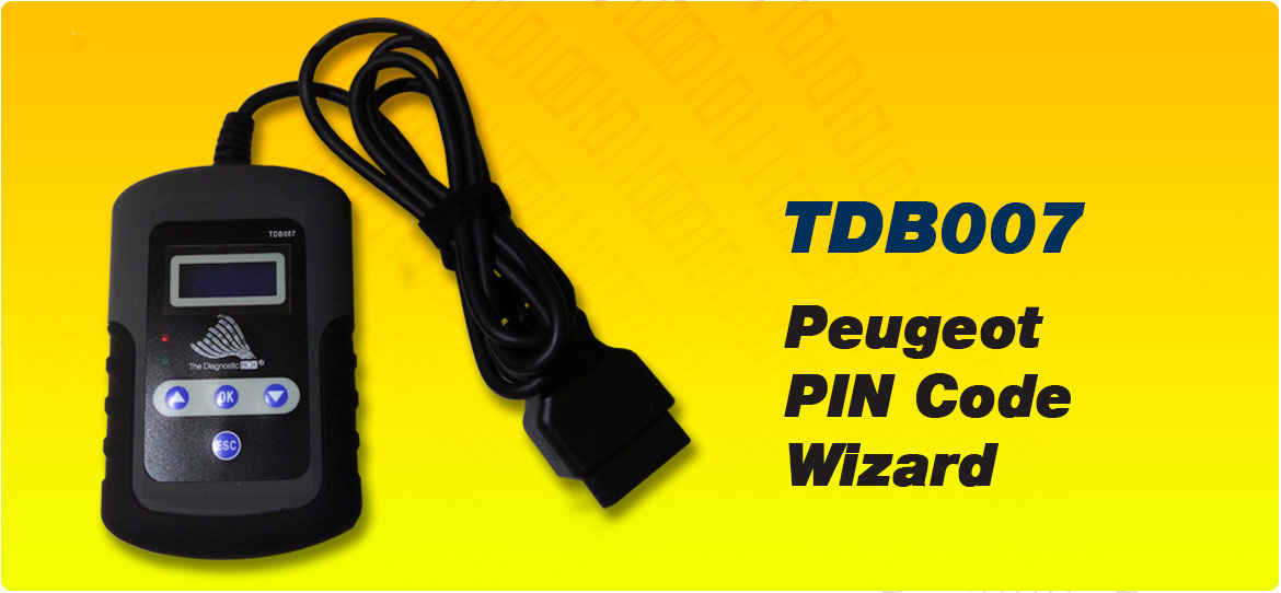 El TDB007 es un simple y fácil dispositivo capaz de extraer el Código Pin en un alto rango de vehículos de las marcas Peugeot & Citroën, el código puede ser leído desde la memoria de la ECU en todas las unidades de control, Sagem, Johnson Controls y Unidades BSI Valeo.